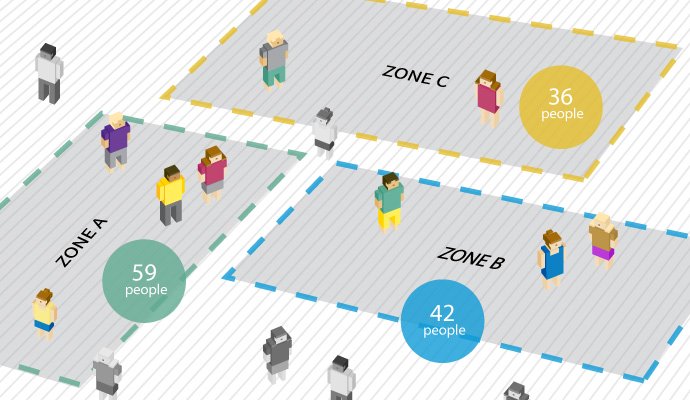 Location analytics uses advanced data mining techniques tuned to the type of data Wi-Fi location provides. Location analytics provides two methods for defining the different zone or area of a venue. Explicit zones can be defined by the user as named polygons that represent known defined spaces. It could be identifiable by its Zone ID.